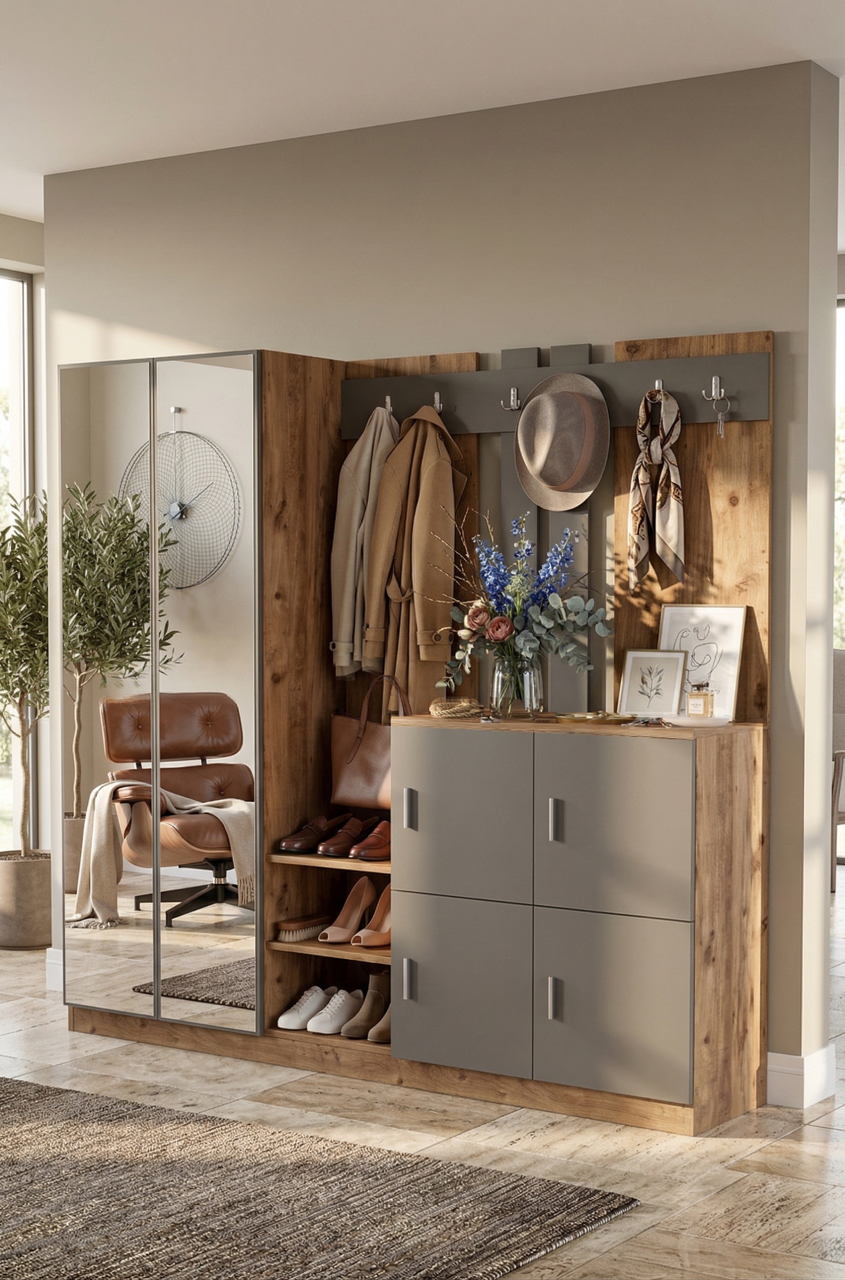 Gibson Vestiyer Portmanto Ayakkabılık Çam-Antrasit DD9-AA