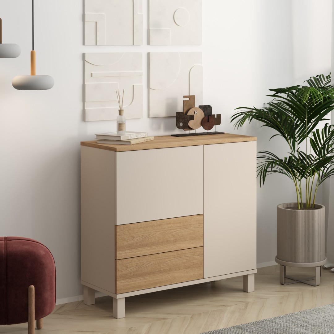 Mood Çok Amaçlı Dolap Ahşap Ayaklı 2 Kapaklı 2 Çekmeceli Kumsal-Sepet MD4-CS