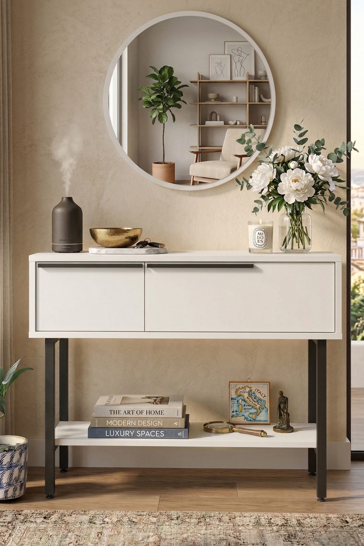 Ana sayfa » Mağaza » Salon & Oturma Odası » Salon Dresuar » Ocean Dresuar Aynalı Kapaklı Metal Ayaklı Beyaz ON12-W