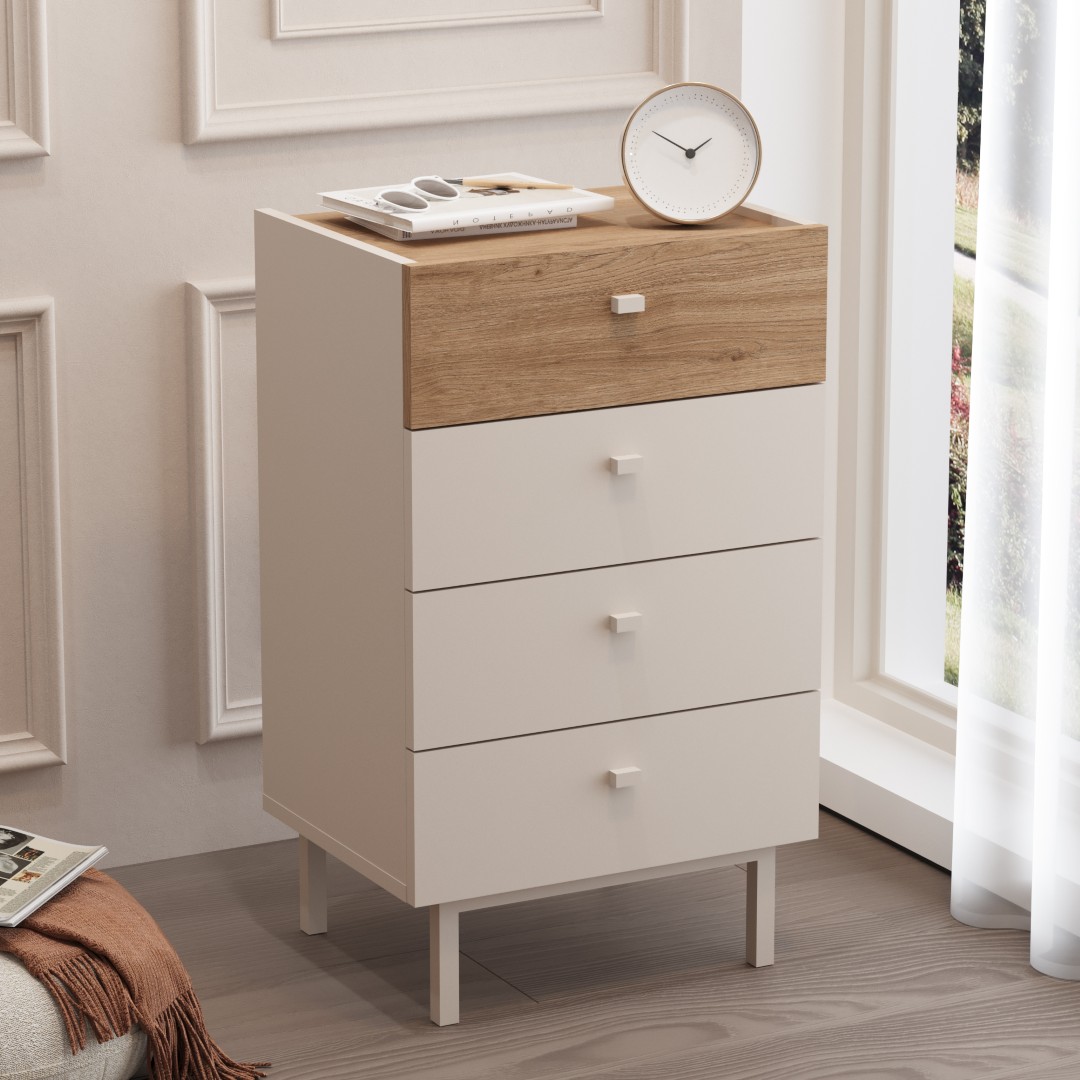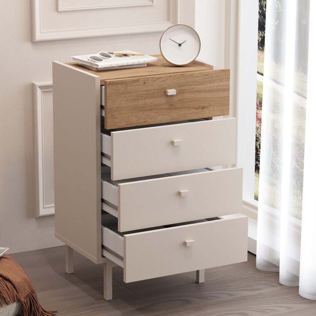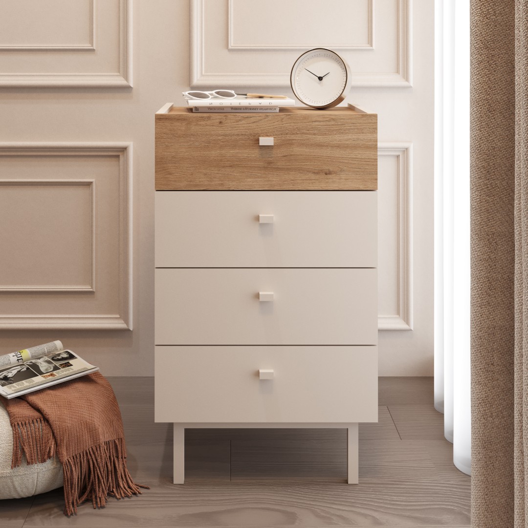 Luke Şifonyer 4 Çekmeceli Ahşap Ayaklı Kumsal-Sepet LK3-CS