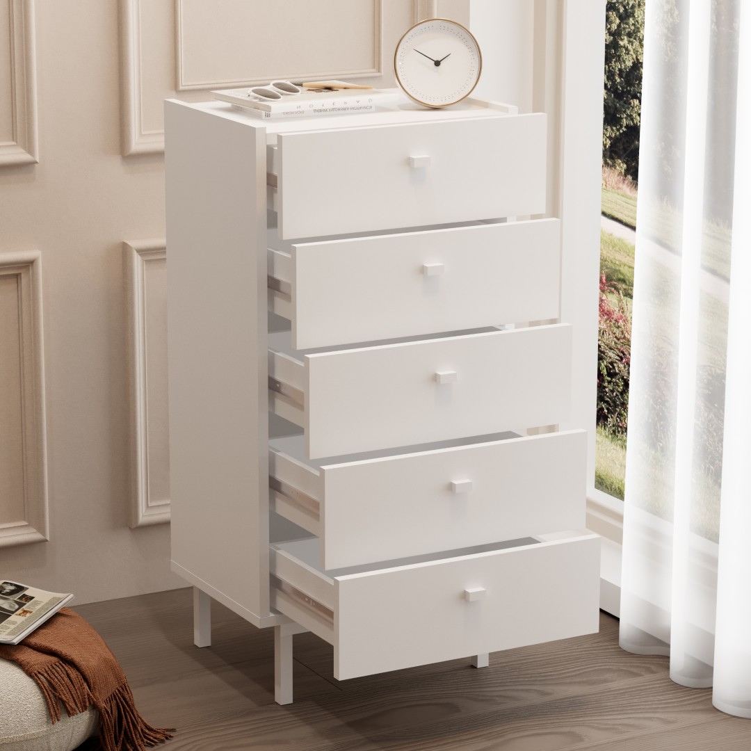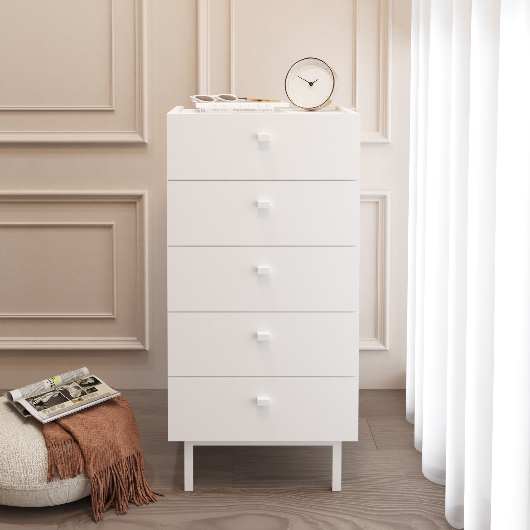 Luke Şifonyer 5 Çekmeceli Ahşap Ayaklı Beyaz LK4-W