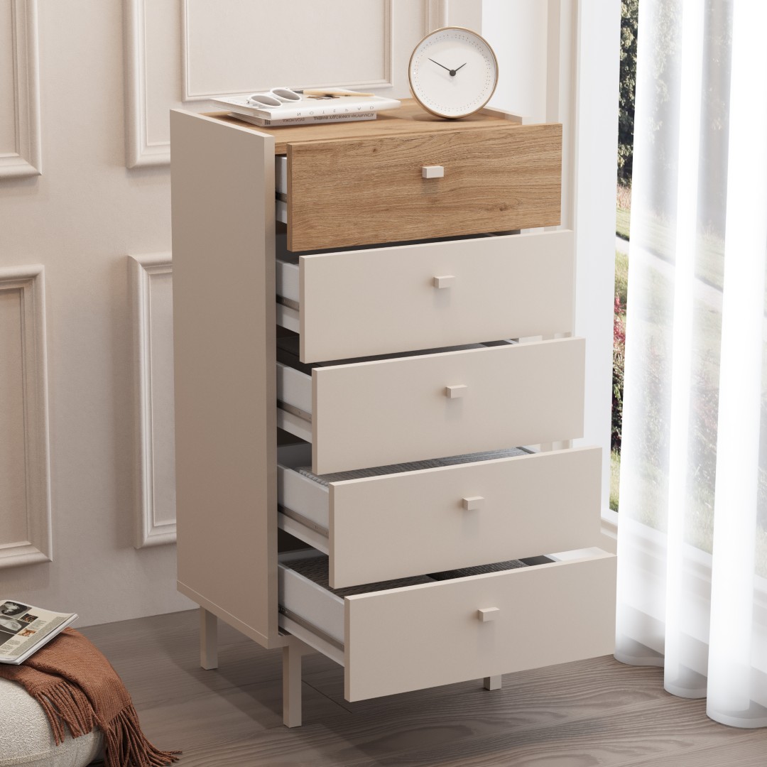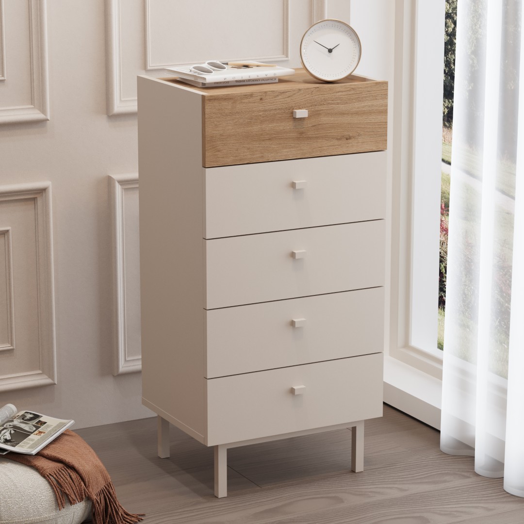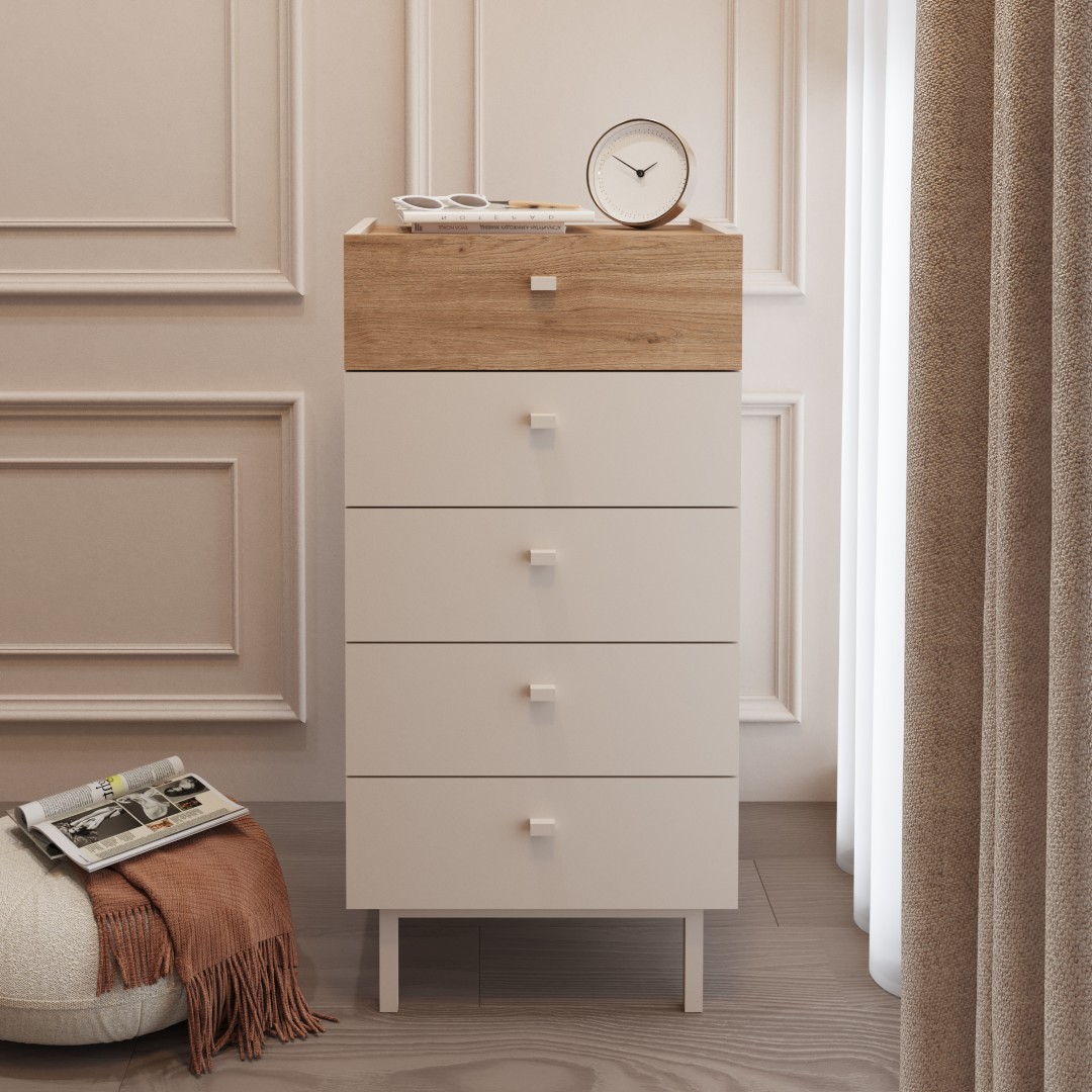 Luke Şifonyer 5 Çekmeceli Ahşap Ayaklı Kumsal-Sepet LK4-CS