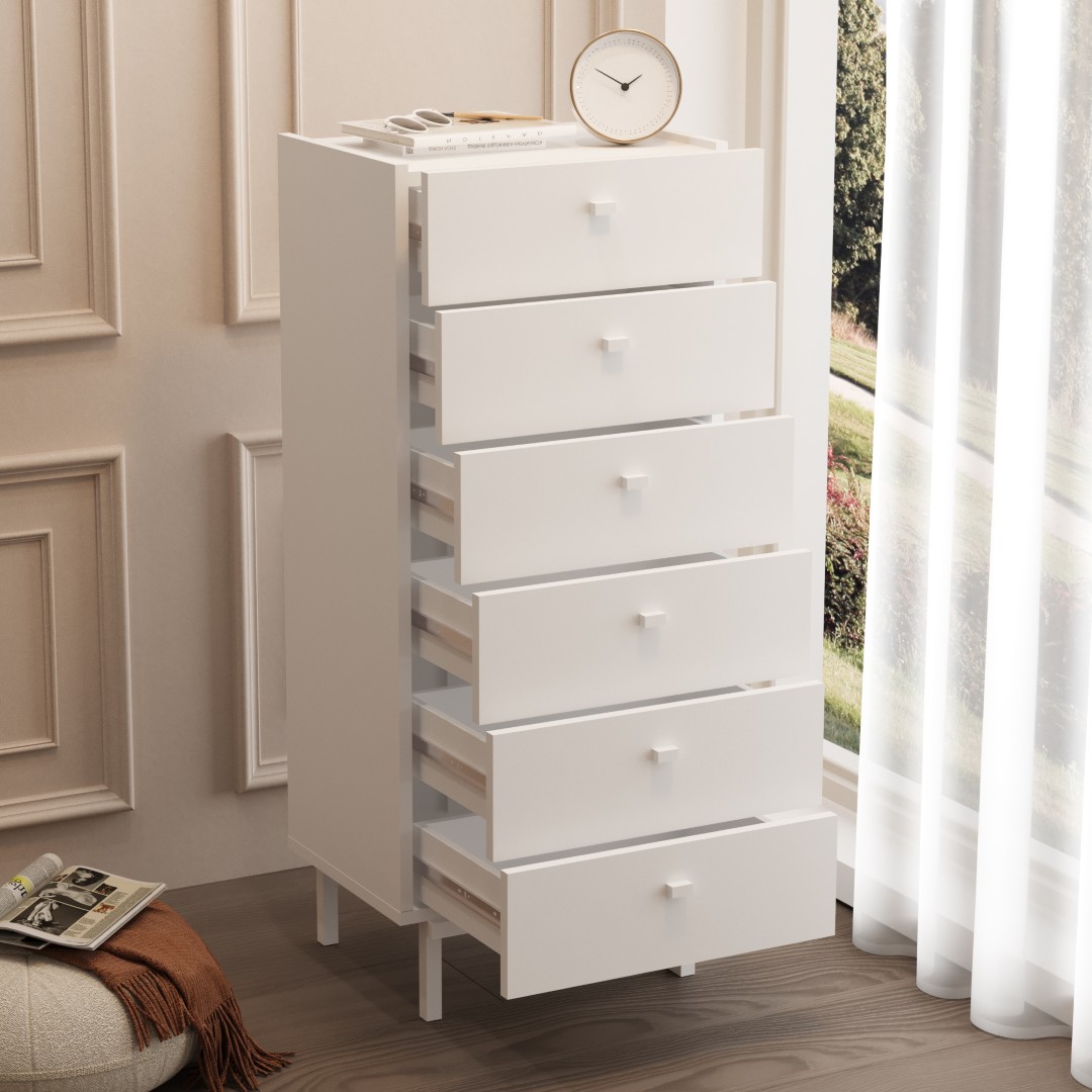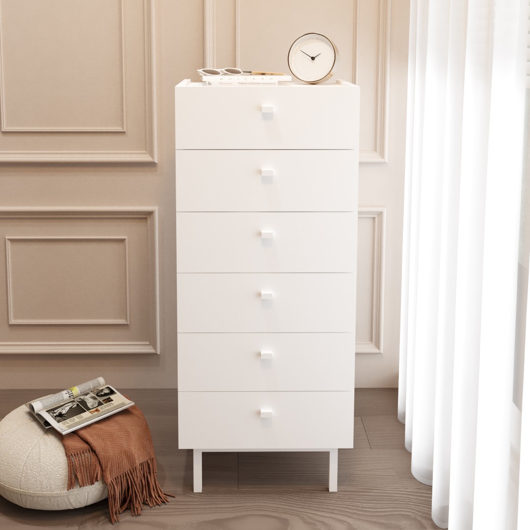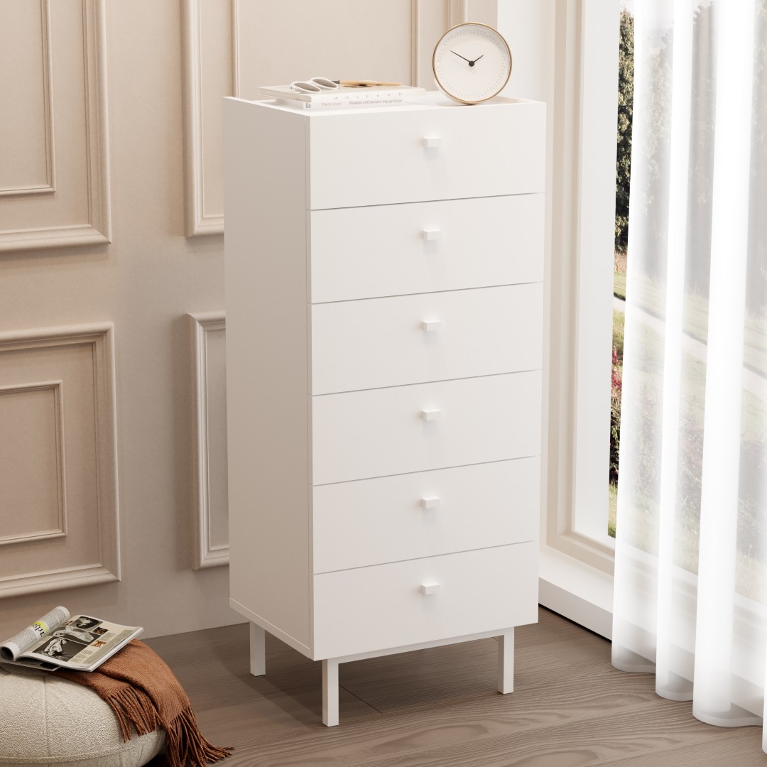 Luke Şifonyer 6 Çekmeceli Ahşap Ayaklı Beyaz LK5-W