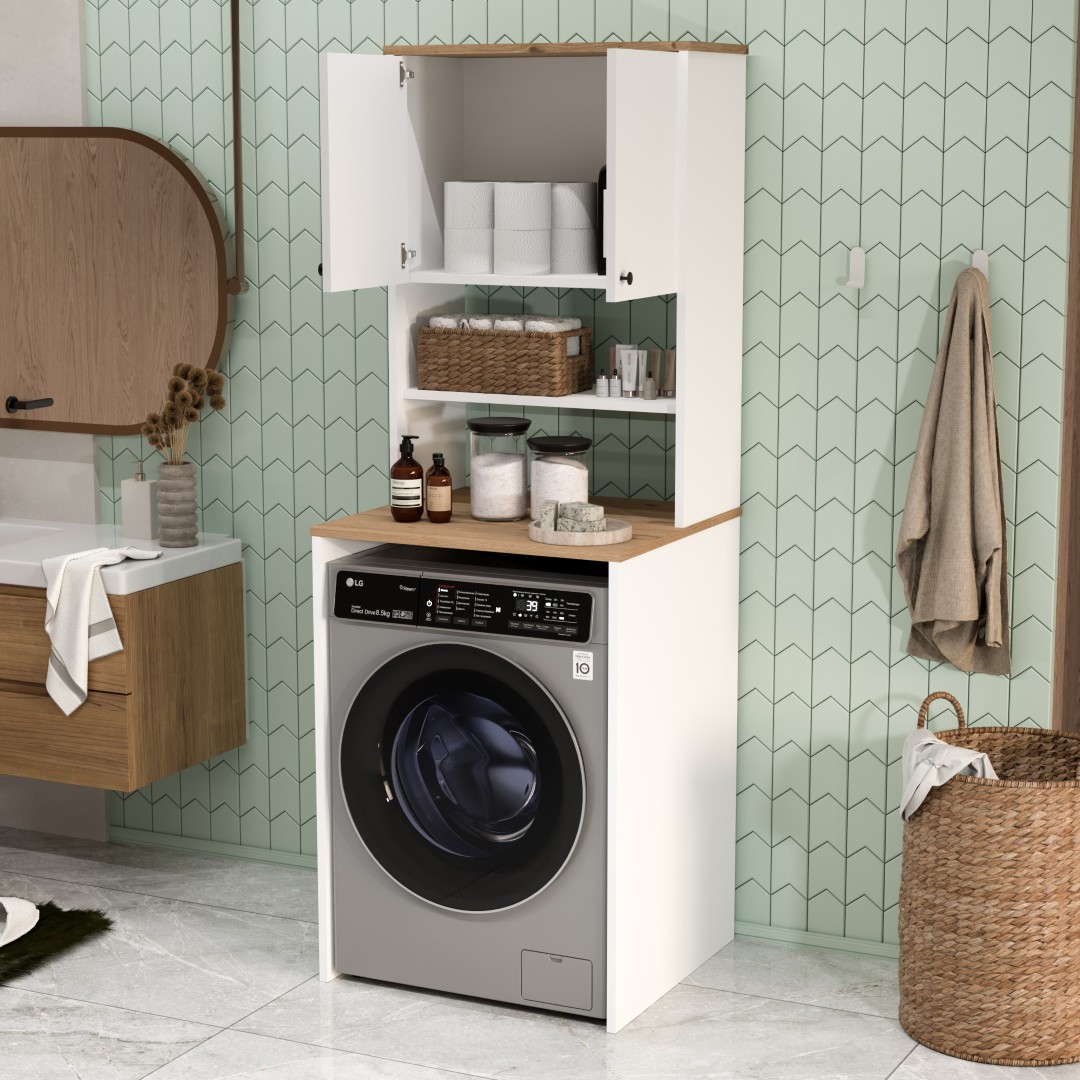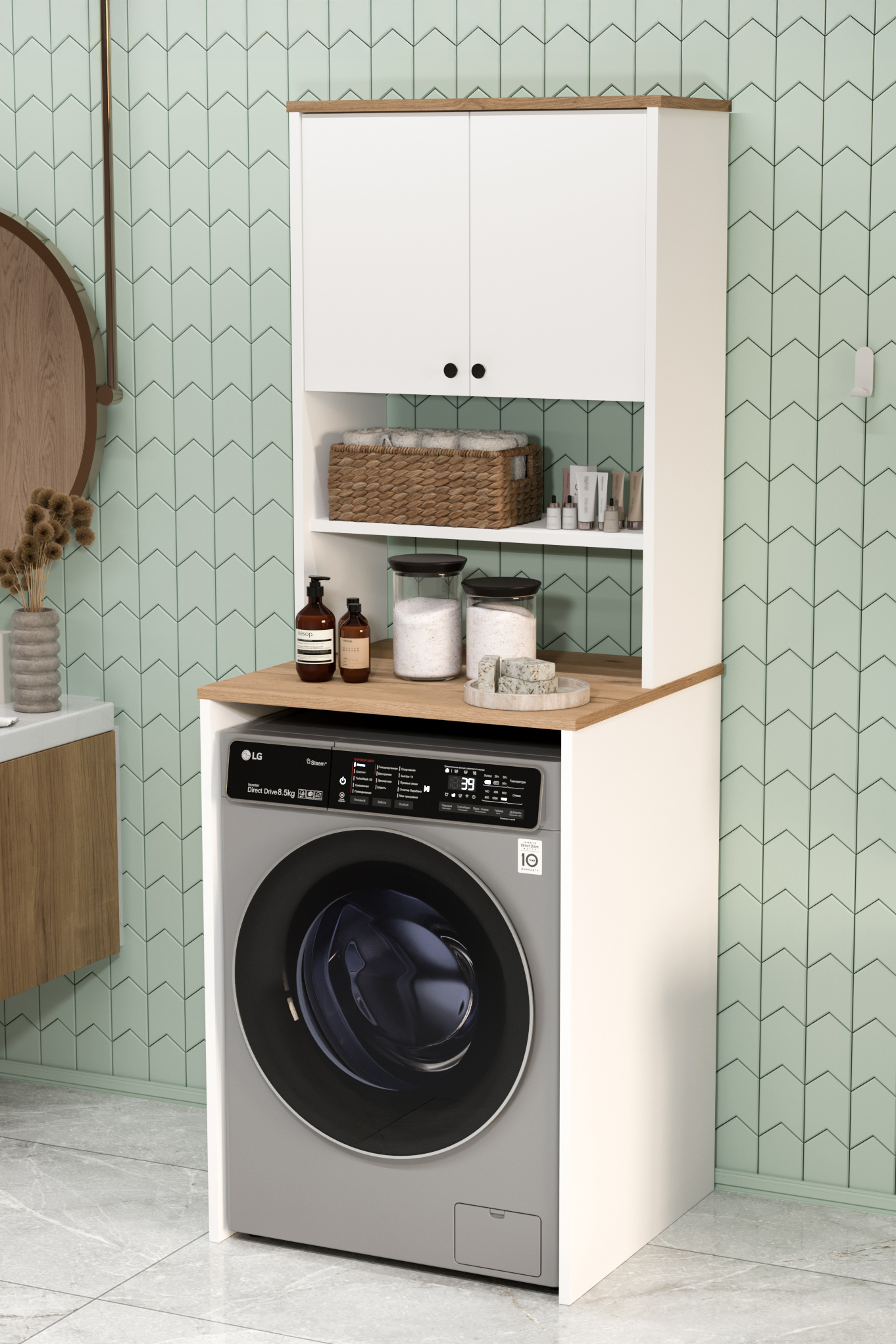 Nord Çamaşır Makinesi Dolabı 2 Kapaklı Raflı Sepet-Beyaz ND11-SW