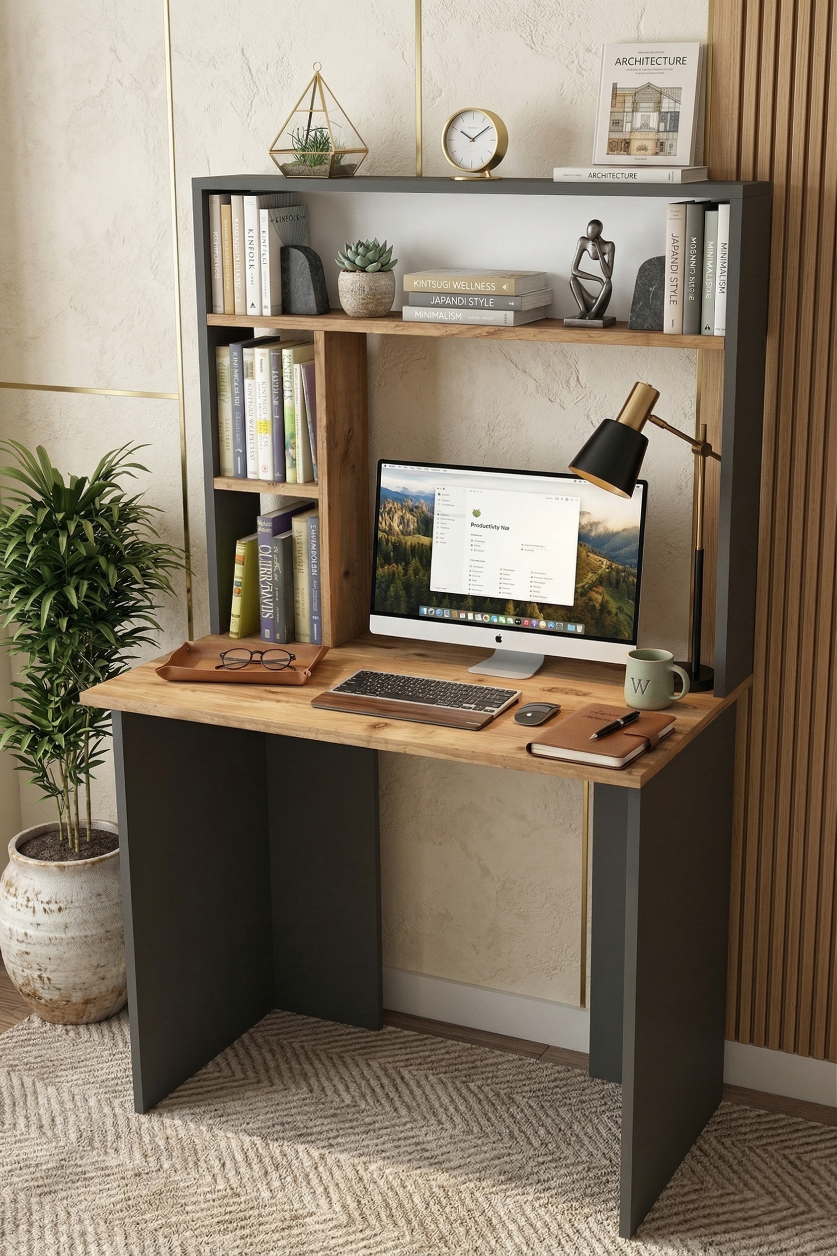 Bremen Çalışma Masası Kitaplık Raf Çam-Antrasit BR2-AA