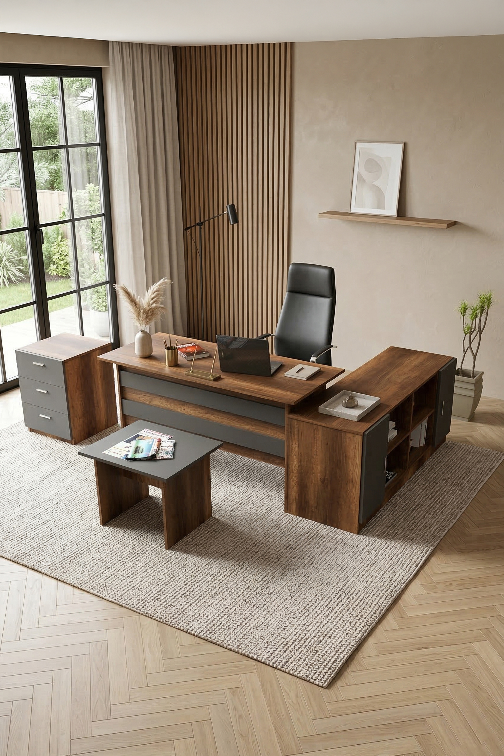 Vario ABCF Ofis Büro Masa Takımı Barok-Antrasit VO13-BA, ÜCRETSİZ KARGO ile hızlıca tarafınıza gönderilmektedir. Bu muhteşem Ofis Takımları, yaşam alanınıza sıcaklık ve estetik katmanın yanı sıra pratik kullanım sağlamaktadır. E1 kalite standartlarındaki çevre ve çocuk sağlığına uygun melamin kaplı 18mm yonga levha ve 3mm mdflam, bu eşsiz ürünün dayanıklılığını ve çevresel dostu yapısını temin eder. Ayrıca, 0.80mm pvc bant detayları ile şıklık ön plandadır.