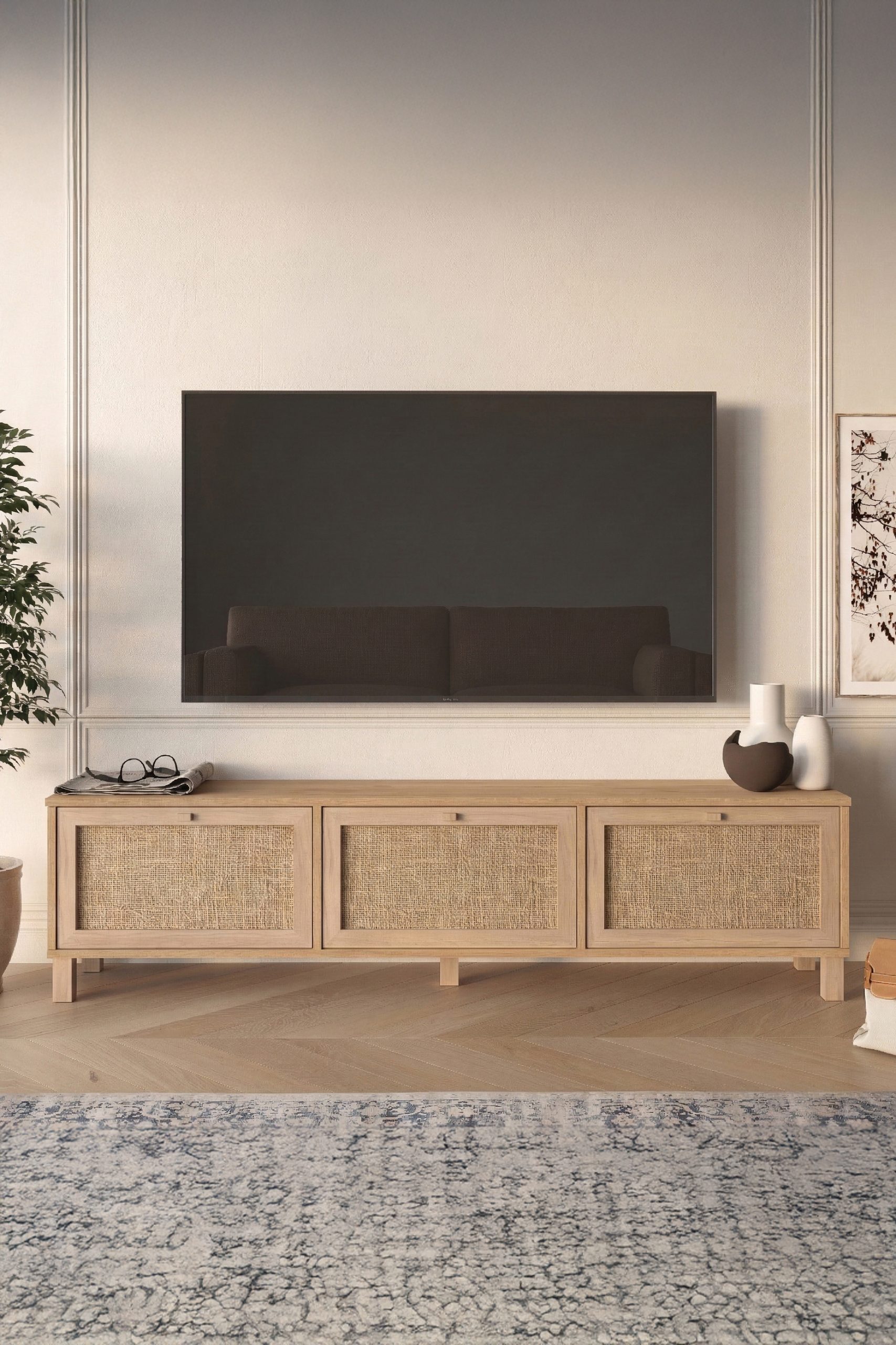 Dune Tv Ünitesi Sehpası Ahşap Ayaklı 3 Ahşap Jüt Kapaklı 180cm Sepet-Jüt DN2-SJ