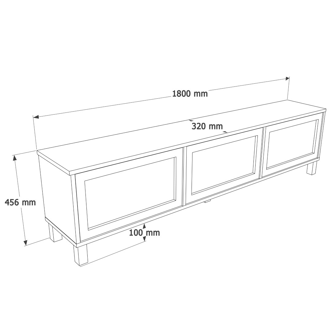 Ölçü : Genişlik :1800 mm Derinlik: 320 mm Yükseklik: 456 mm Kullanılan Malzemeler : 1.sınıf E1 kalite standartlarında çevre ve çocuk sağlığına uygun melamin kaplı 18mm yonga levha kulanılmıştır. **Gövde 18 mm Suntalam olup kapaklarda ahşap malzeme olarak kayın ağacı ve jüt kumaş kullanılmıştır. 1.sınıf E1 kalite standartlarında çevre ve çocuk sağlığına uygun melamin kaplı 3mm mdflam kullanılmıştır. 0.80mm pvc bant kullanılmaktadır. 1.sınıf bağlantı elemanları ve aksesuarlar kullanılmaktadır. Kayın ahşap kulp ve kayın ahşap ayaklar kullanılmaktadır. Bağlantı Sistemi Ürünü oluşturan parçalar minifix bağlantı sistemiyle birleştirilmektedir. Ürün defalarca sökülüp takılma özelliğine sahiptir.-