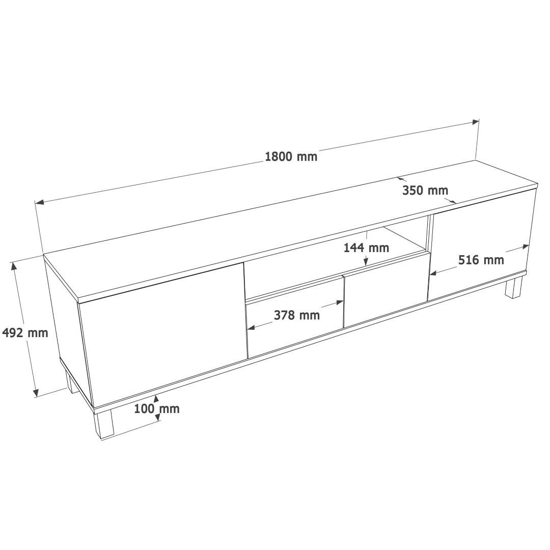 Mood Tv Ünitesi Sehpası 2 Kapaklı 2 Çekmeceli Ahşap Ayaklı 180cm Kumsal-Sepet MD1-CS