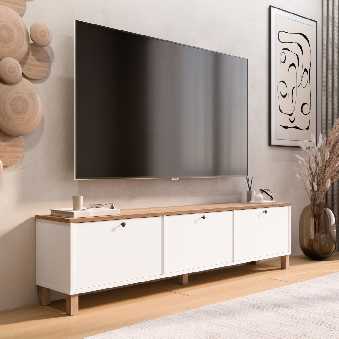 Nord Tv Ünitesi Sehpası 3 Kapaklı Ahşap Ayaklı 180cm Sepet-Beyaz ND6-SW