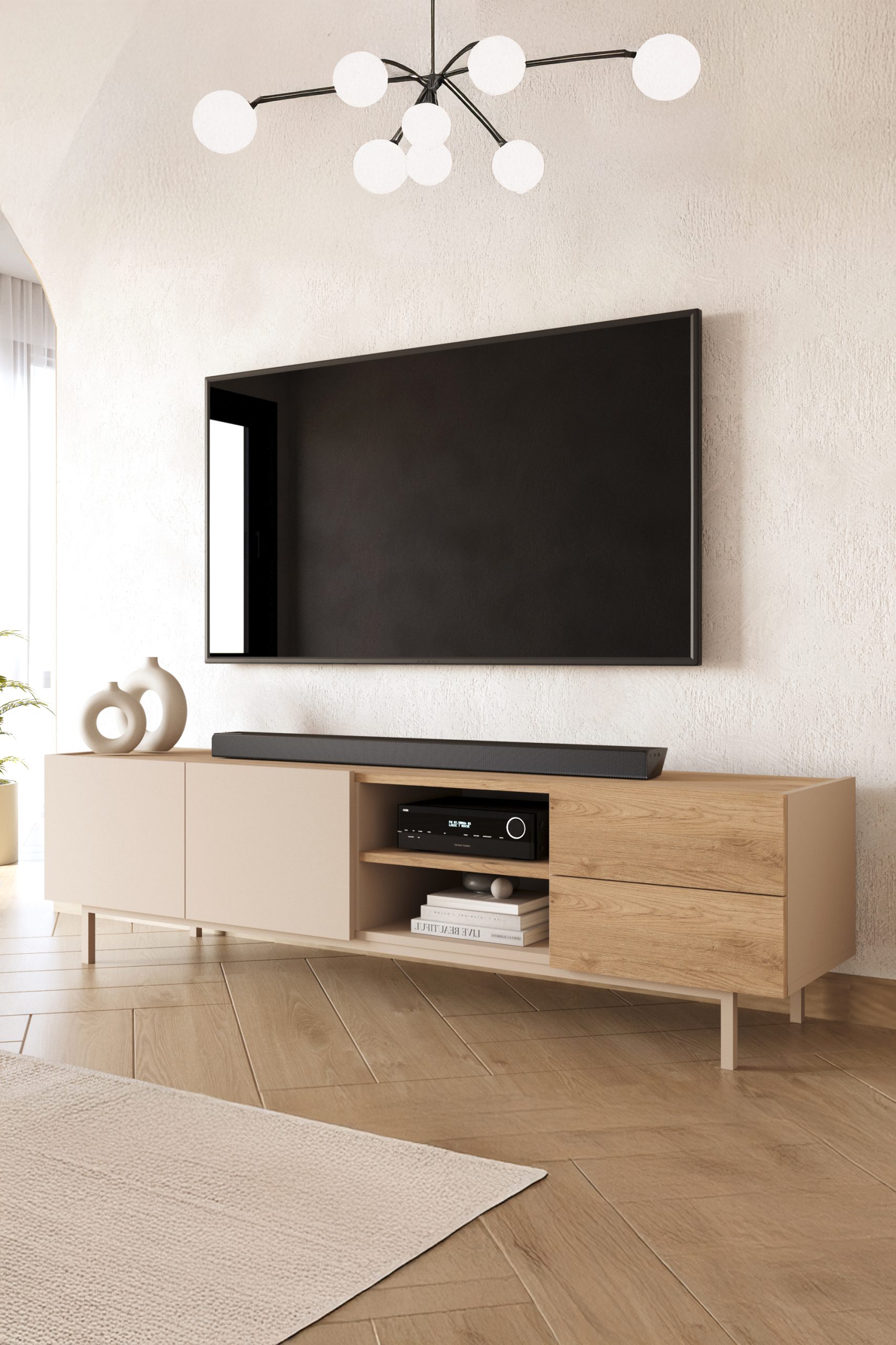 Sedra Tv Ünitesi Sehpası 2 Kapaklı 2 Çekmeceli Ahşap Ayaklı 180cm Kumsal-Sepet SD2-CS
