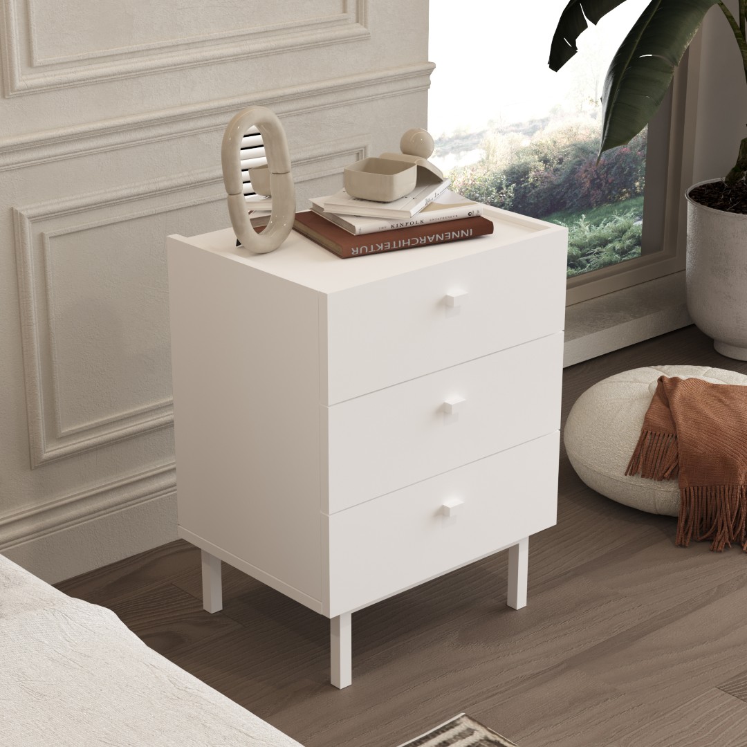 Ana sayfa » Mağaza » Yatak Odası » Yatak Odası Komodin » Luke Komodin 3 Çekmeceli Ahşap Ayaklı Beyaz LK2-W