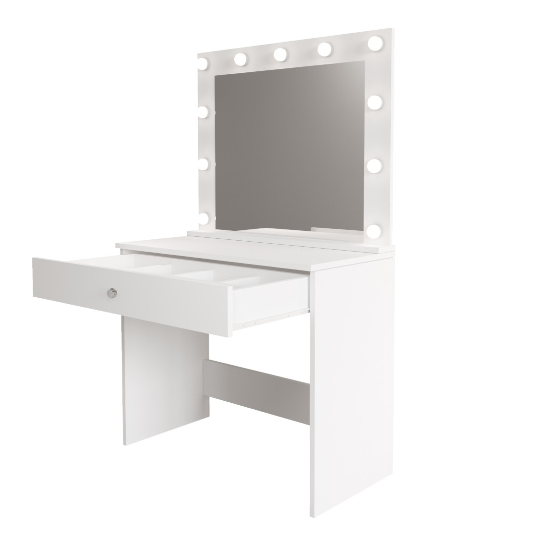 Ana sayfa » Mağaza » Yatak Odası » Yatak Odası Makyaj Masası » Monroe Makyaj Masası Çekmeceli Düzenleyici Hollywood Led Işıklı Raflı Beyaz MO4-W
